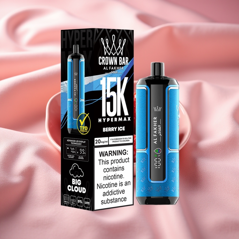 Al Fakher Crown Bar 15K Hypermax Wegwerf-Vape mit 22ml E-Liquid, 600mAh Akku, Typ-C-Ladung, DTL, 6mg/ml Nikotin, Beeren-Eis