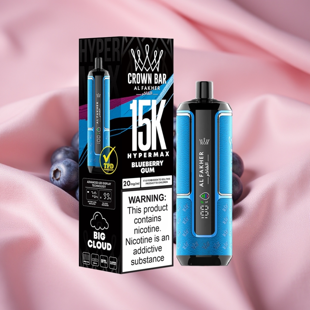 Al Fakher Crown Bar 15K Hypermax Wegwerf-Vape mit 22ml E-Liquid, 600mAh Akku, Typ-C-Ladung, DTL, 6mg/ml Nikotin, Blaubeerkaugummi