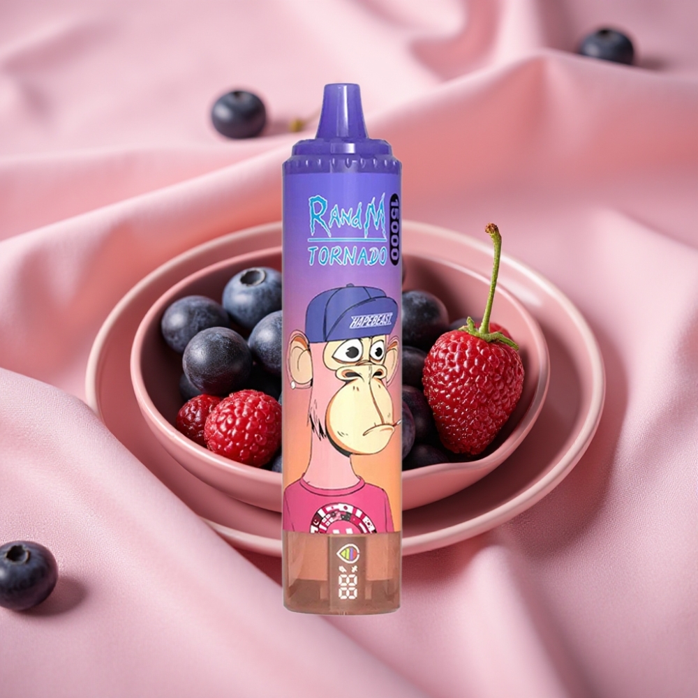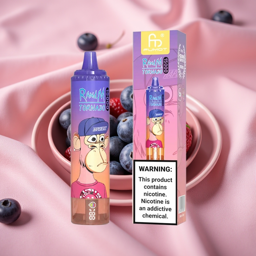 RandM Fumot Tornado 15000 Puffs 25ml 850mAh Mesh Coil Typ-C LCD Heidelbeere Kirsche Cranberry