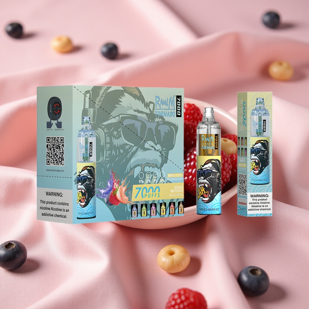 RandM Fumot Tornado 7000 Puffs Wegwerf-Vape mit Mischbeeren, 14 ML, Mesh Coil, Typ-C, RGB