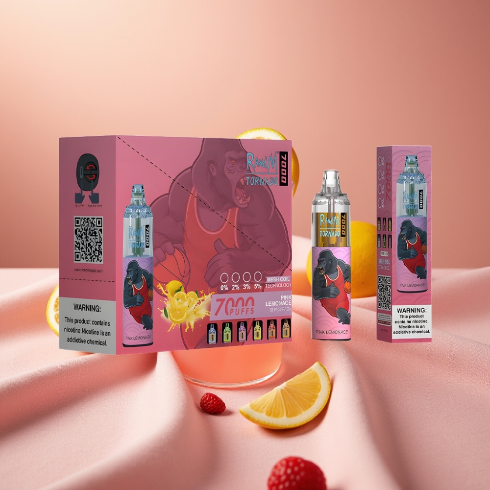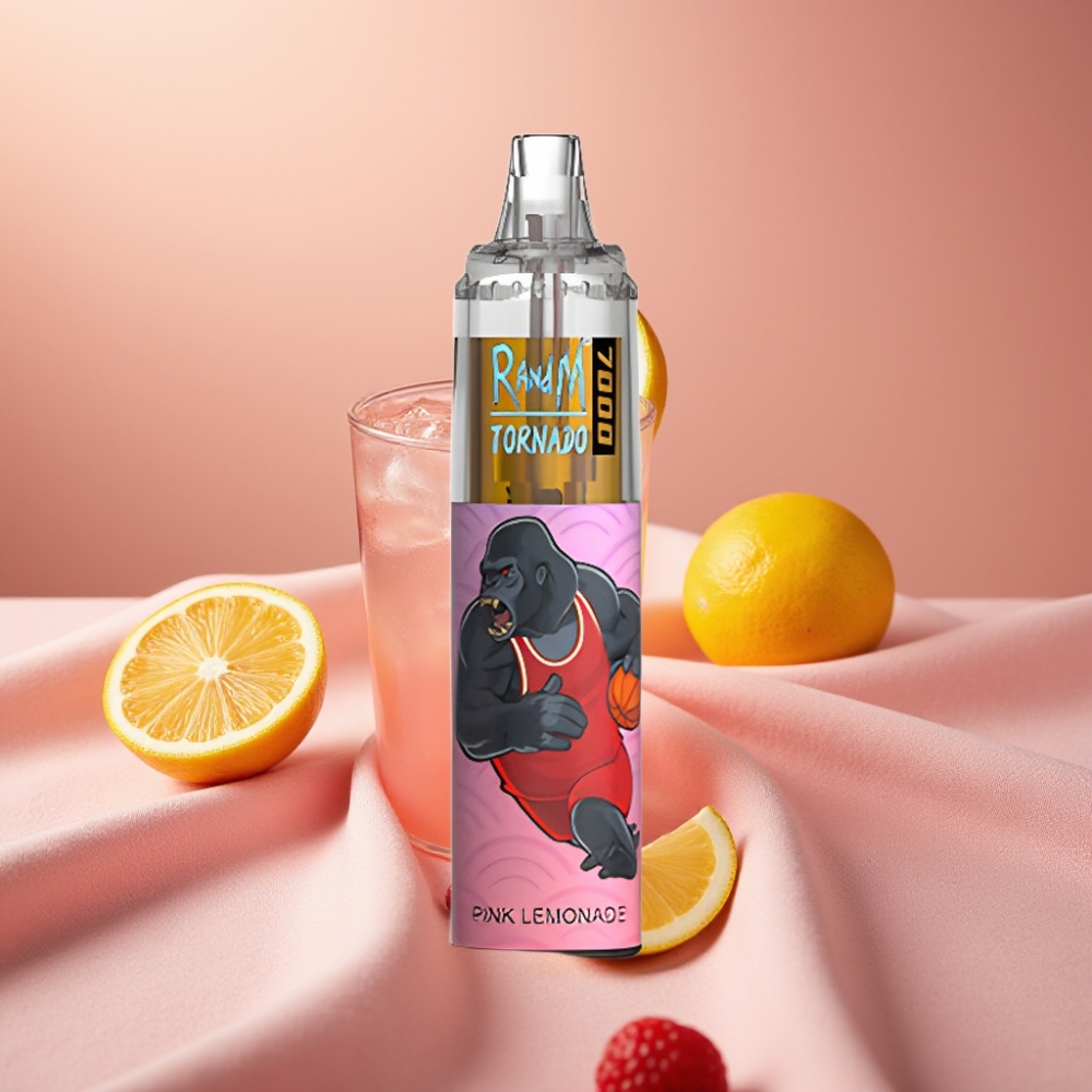 RandM Fumot Tornado 7000 Wiederbefüllbare E-Zigarette mit 14 ML Liquid, 850 MAH Akku, Mesh Coil, Typ-C-Anschluss, RGB-Licht, luftregulierbar, Rosa Limonade