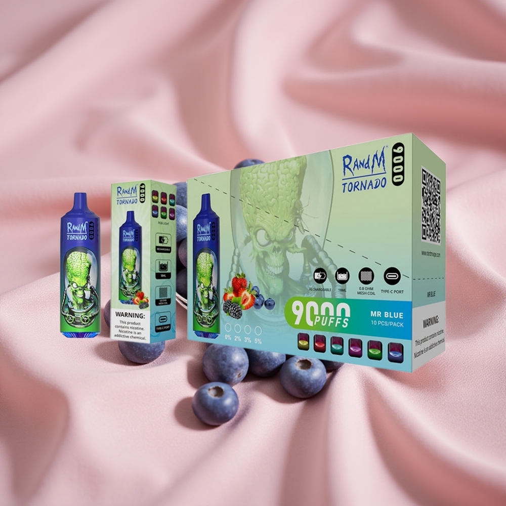 RandM Tornado 9000 Puffs wiederverwendbar mit 850 mAh Akku, 18 mL E-Liquid, Mesh Coil, RGB Display – Herr Blau